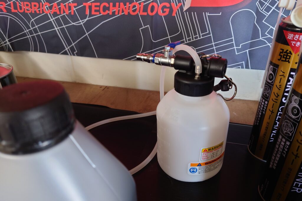 負圧を利用してブレーキフルードを交換するツール。エアー消費量が約185L/minと非常に多いです。
