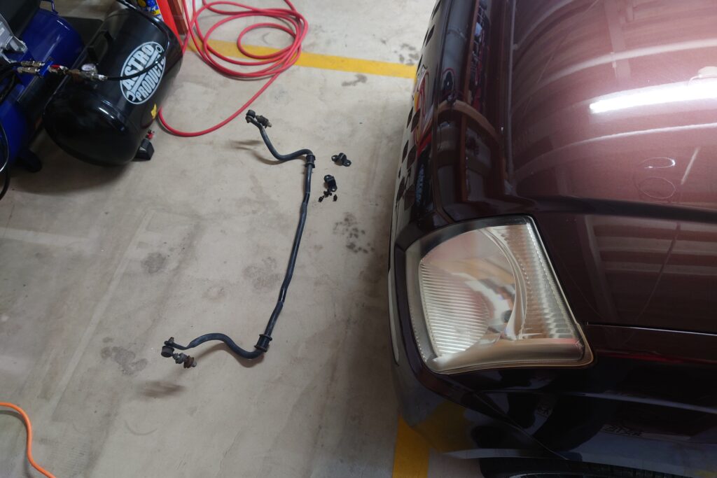 ちなみに新品でそろえるとバーが15000円ほどで、スタビリンクとかカマボコ形状の部品とかすべてそろえると30000円くらいになる。