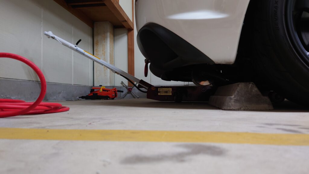 ゴムパッドがないので実際にジャッキアップするのはまだ少し先の話…。