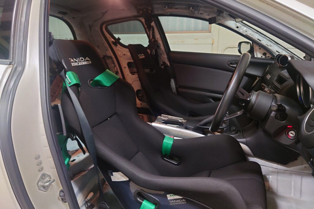前回の新規検査では乗車定員2名で登録するために内装はある程度仕上げてから持って行ったのですでに社外品のシートに交換していた。